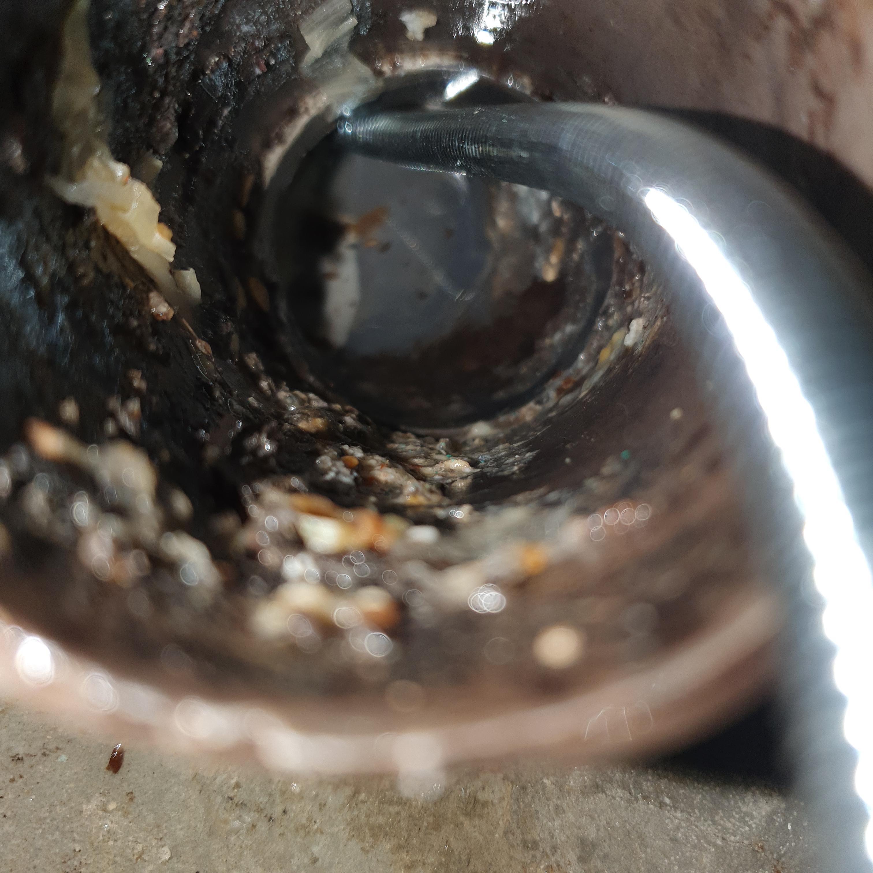 장기간동안 비어있어던 집이라서 하수도 배관 안에서 동물 지방과 음식물들이 같이 뒤엉켜 굳은 것 같다.